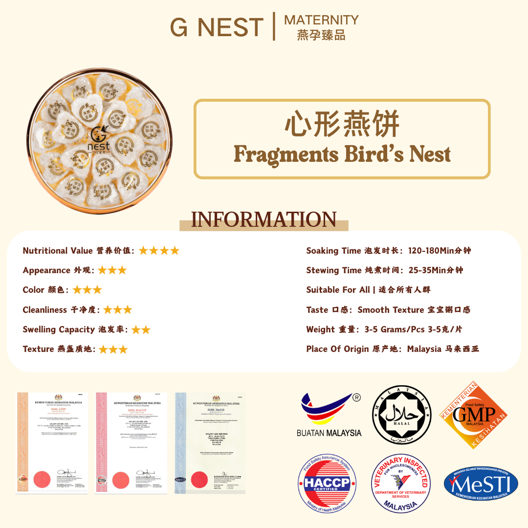 1 review for G NEST Fragment Bird’s Nest 心形燕丝饼 燕碎饼纯天然燕窝 孕妇燕窝 Pregnancy Bird’s Nest